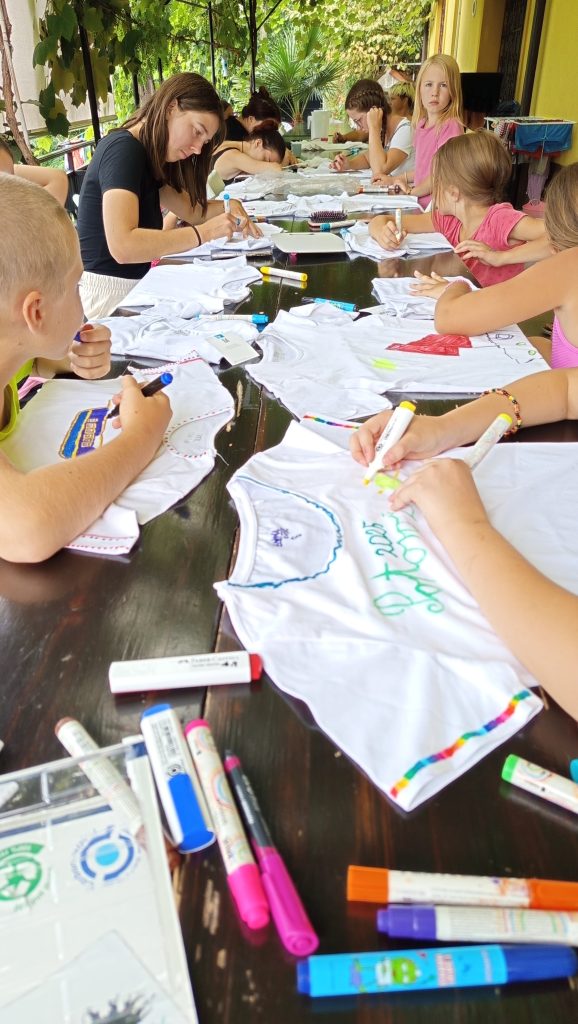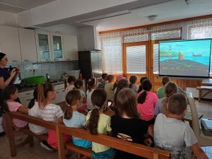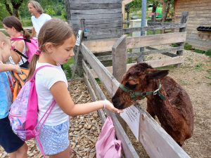 Osrednje vodilo je bila knjiga Polž na potepu, na kitovem repu, ki je otroke navdihovala pri ustvarjanju, tako samostojnem kot skupinskem. Teden je prinesel ustvarjalne delavnice z naravnimi materiali, postavitev galerije na prostem, kjer so otroci nastopali kot kustosi in voditelji, pripravo lastnih zloženk za obiskovalce, pogostitev s sadno solato, ki so jo pripravili sami. A tabor ni bil samo ustvarjalen — bil je tudi zelo aktiven! Otroci so na kuharski delavnici pekli svoje jabolčne pite, obiskali Kanu kamp Radenci in spoznali alpake, se kopali v Kolpi v Dolu pri Starem trgu ter uživali v vodnih igrah na dvorišču ŽK Stari trg ob Kolpi.